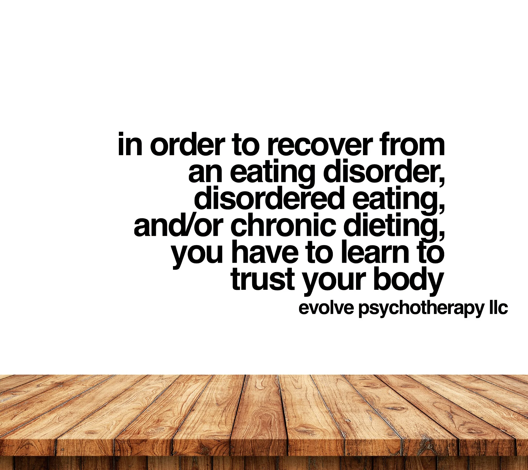 Trust is a crucial component of recovery. Think about other relationships in your life. Imagine what they would be like if they lacked trust. The relationship would be filled with questioning, doubt, and anxiety. After all, a relationship can’t truly be intimate, connected, safe, and secure if it lacks trust. Is there a relationship more intimate than the one you have with your body??